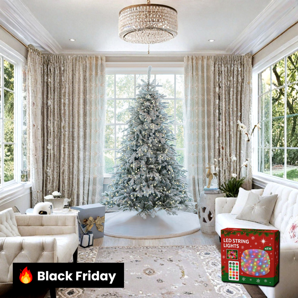 ✨ A Árvore Queen Flock com Neve e 800 LEDs Quentes transforma qualquer espaço em um cenário natalino sofisticado e encantador.